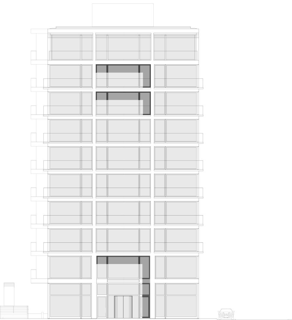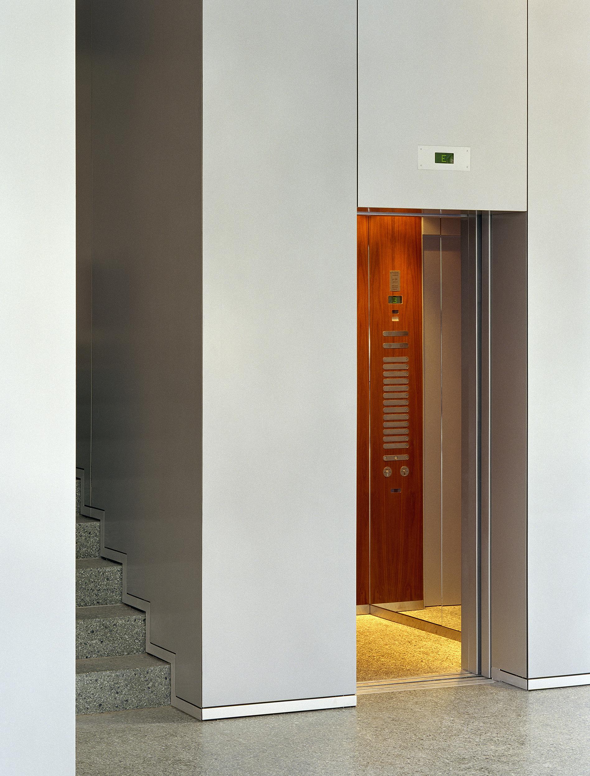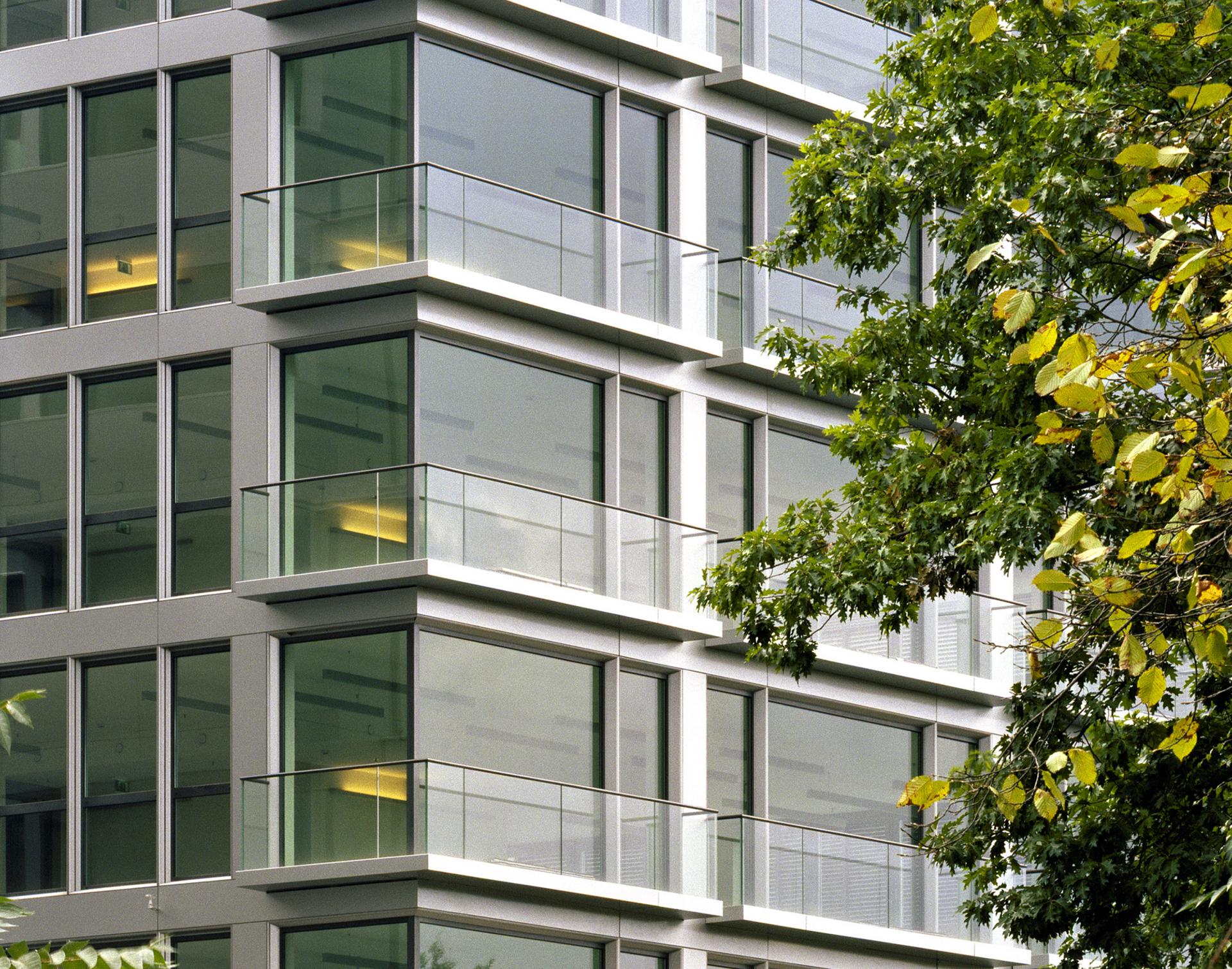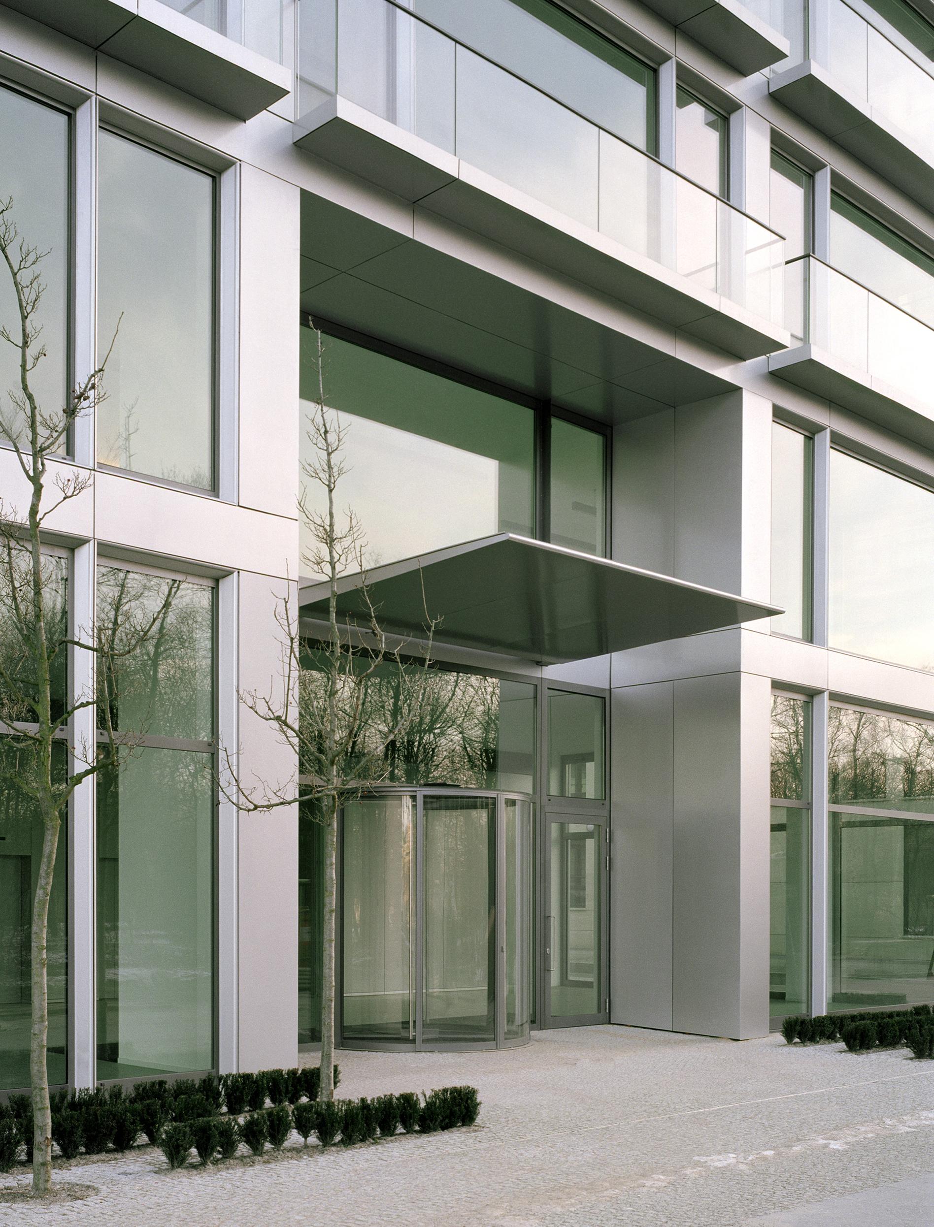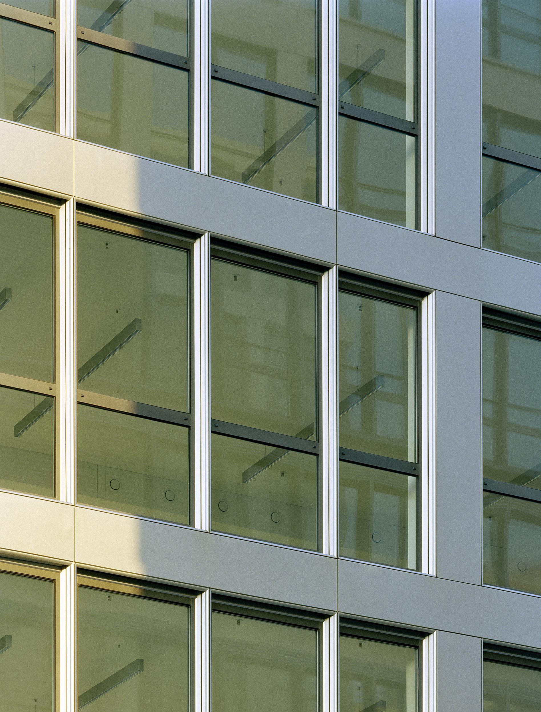 The buildings’ volume was precisely defined by urban planning stipulations. Design principles borrowed from the automotive industry helped to find an elegant façade solution as an overall concept. It solves the design problem of conventional grid façades, with their visible connections to interior walls and wide structural elements, in a new way. The special value of the building is created, among other things, by its high-quality detailing and stringency.