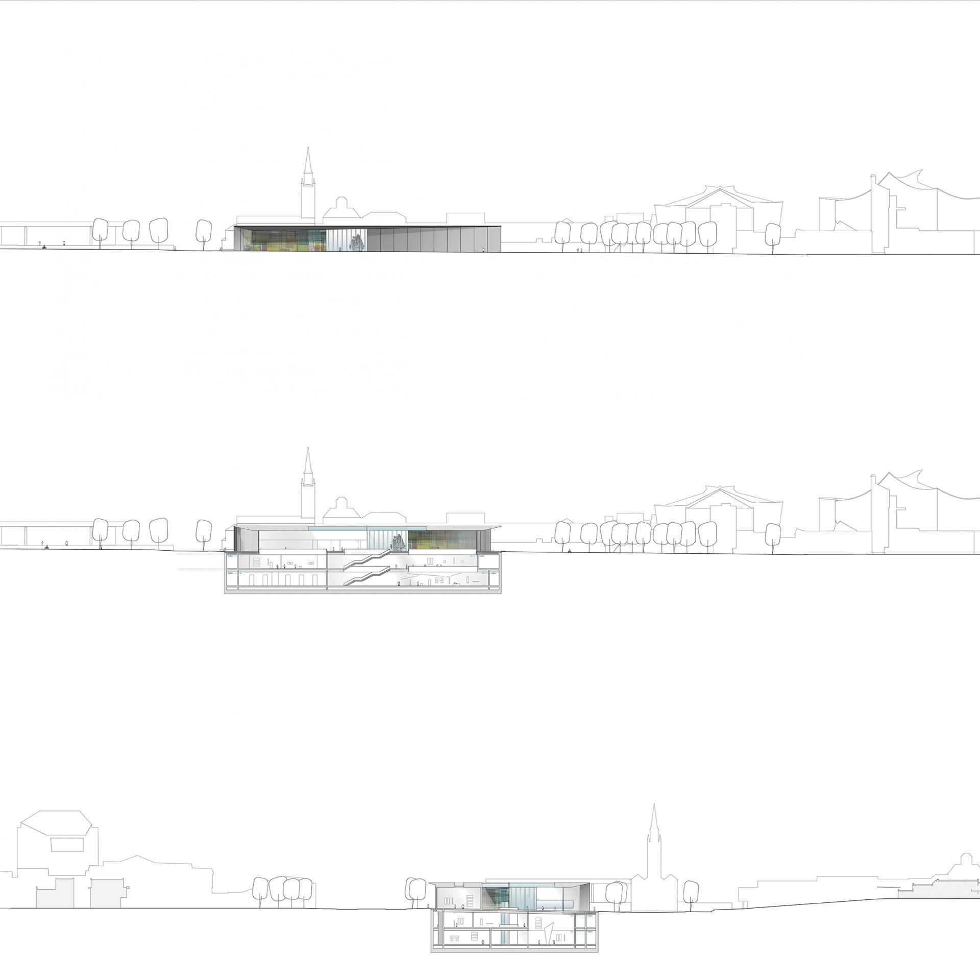 The museum has entrances from all directions, urban references are taken up and integrated into the building structure. The museum as the central location is inviting from all sides. The ground floor is transparent, easy to cross and full of daylight. The building is lower than the New National Gallery and the maid of honor of St. Matthew's Church. Eye relationships are preserved. Therefore, the - artificially lit - exhibition spaces are introverted and completely focused on enjoying art on two basements. The architecture is calm, but striking and recognizable.