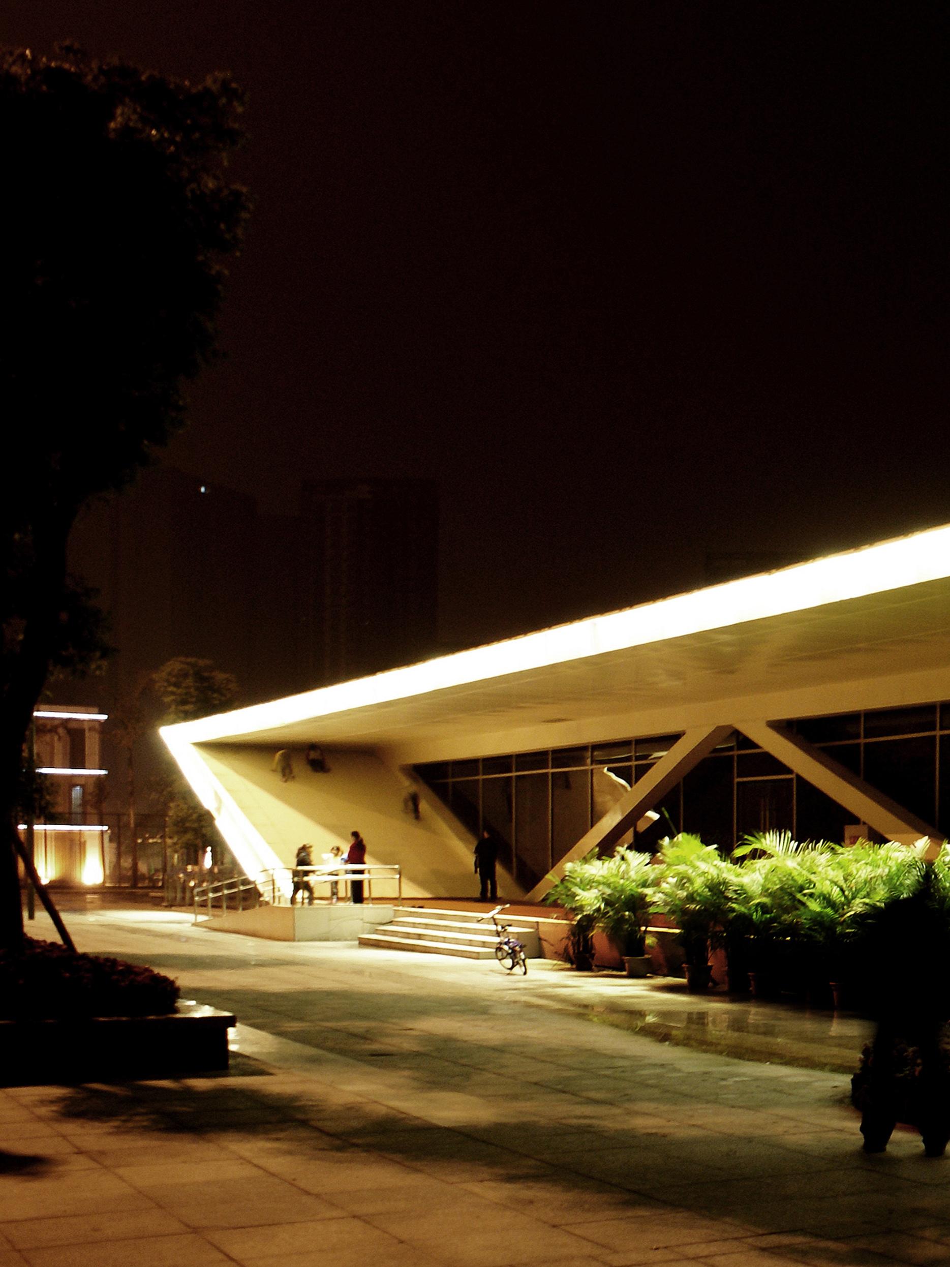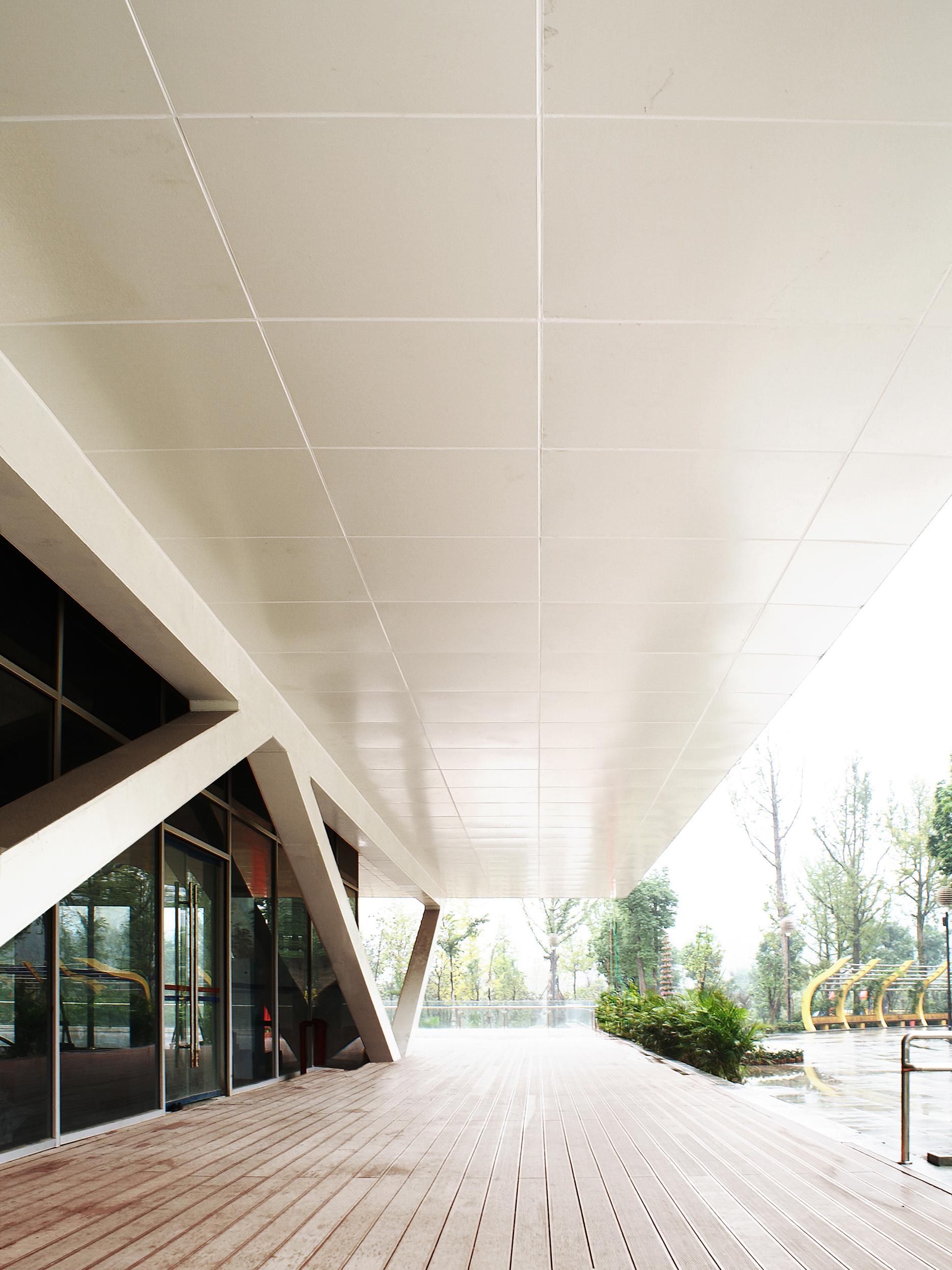 The Sports Facilities Building houses a restaurant, teahouse and shop at park level. This is the only above ground accommodation. Below ground the building houses a yoga and fitness area with a 25-metre outdoor-pool, changing rooms with sanitary facilities serving the nearby sports fields, and public toilets.