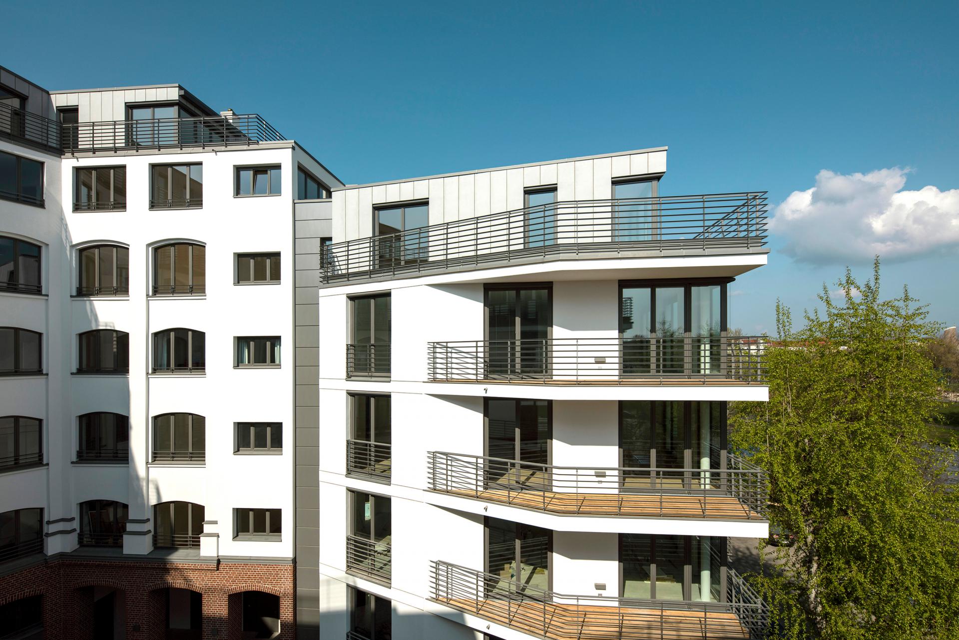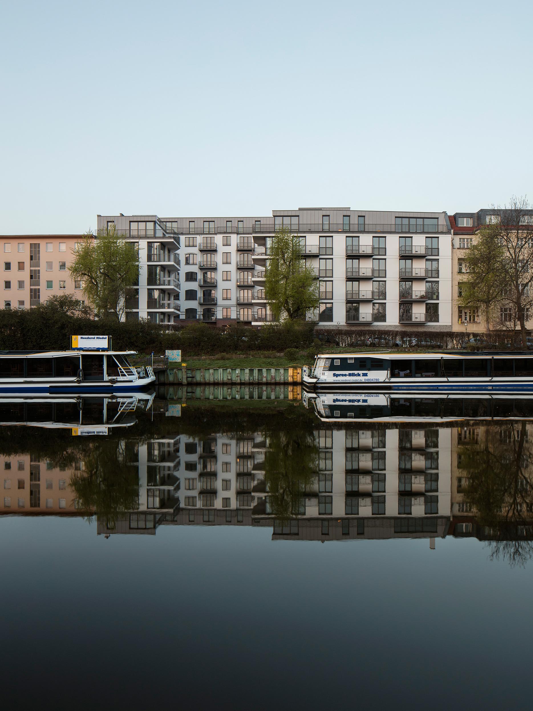 Historic building fabric and modern new built lofts, townhouses and penthouses directly at the Spree riverside