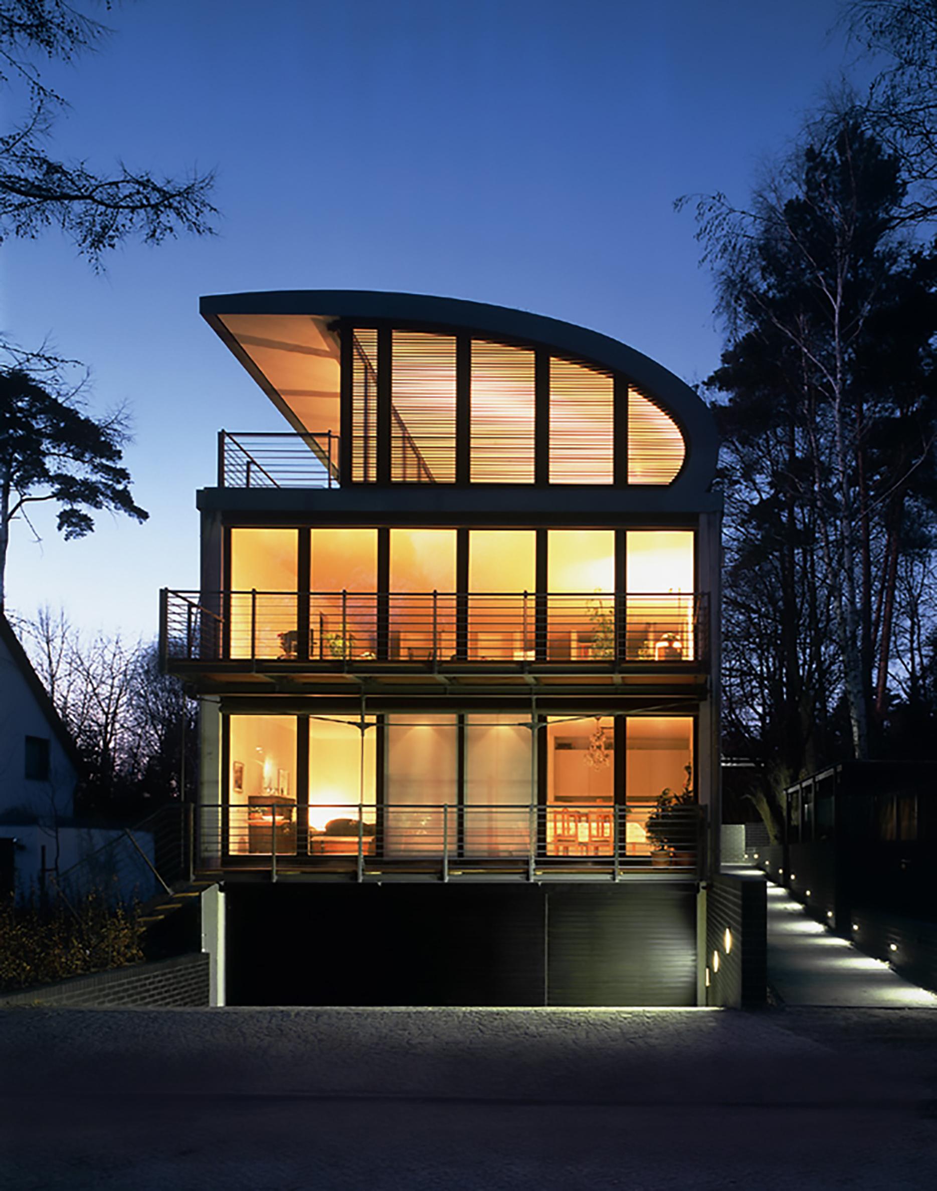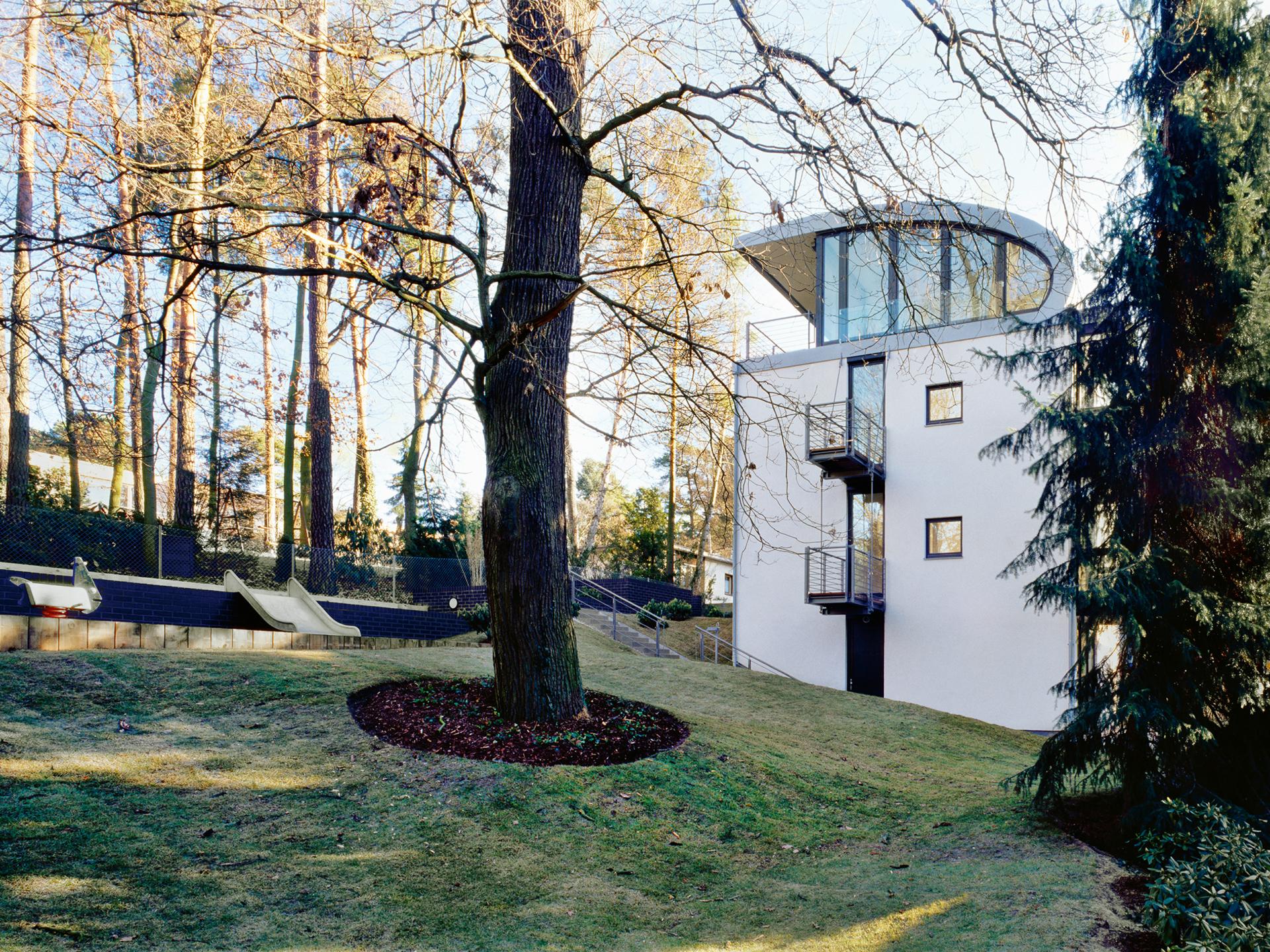 This project represents a so-called „Urban Villa“, a very popular building type in Berlin during the 1990’s, otherwise often realized in a half-hearted „retro-style“. Comprising 5 freehold apartments, this building in a densely wooded location was conceived with a consistent modern design approach and an emblematic contemporary architecture.