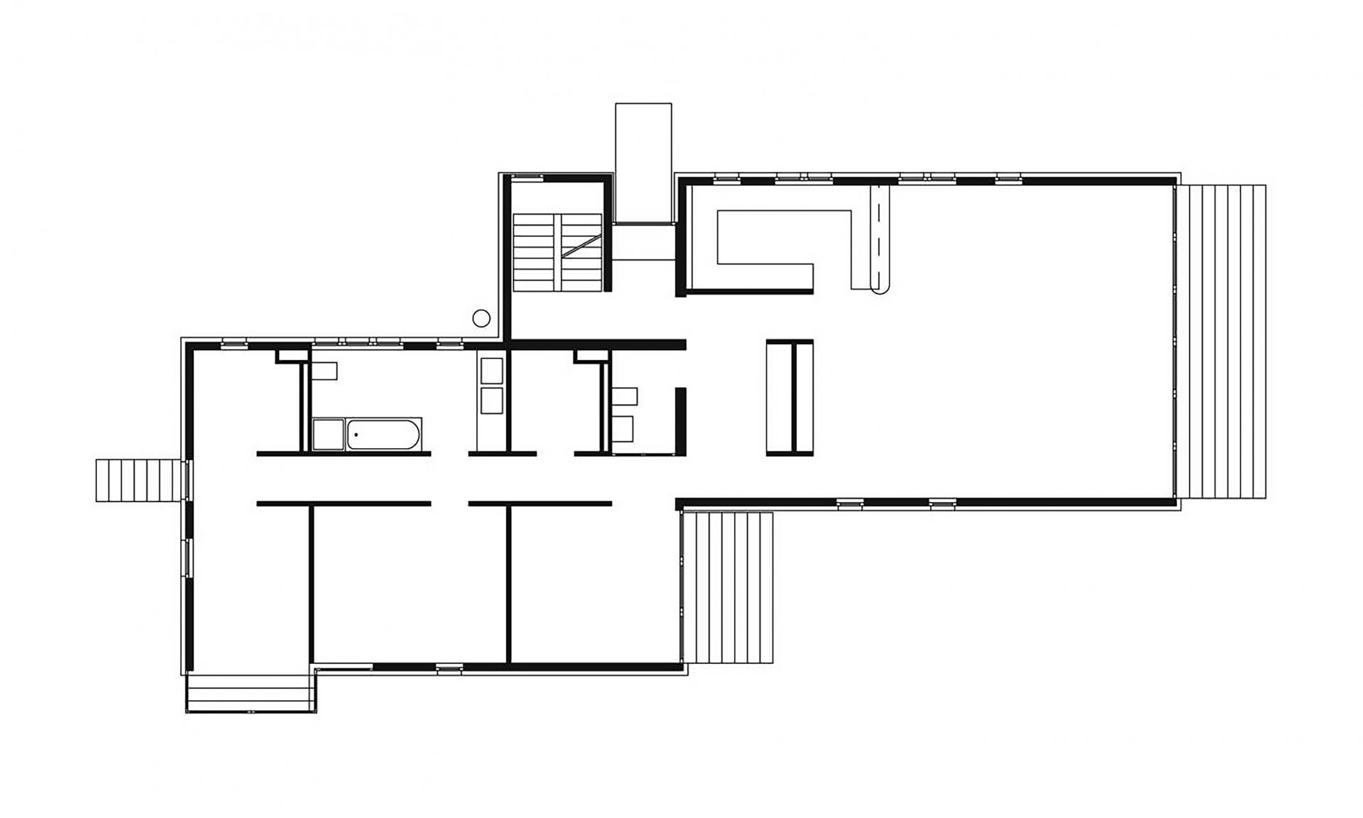 The built volume is staggered in depth and fits in with the surrounding single family houses. Each of the five apartments has windows on all sides. Floor plans can be flexibly altered for the long term through the use of design features such as wide-span ceilings and non-load-bearing inner walls.